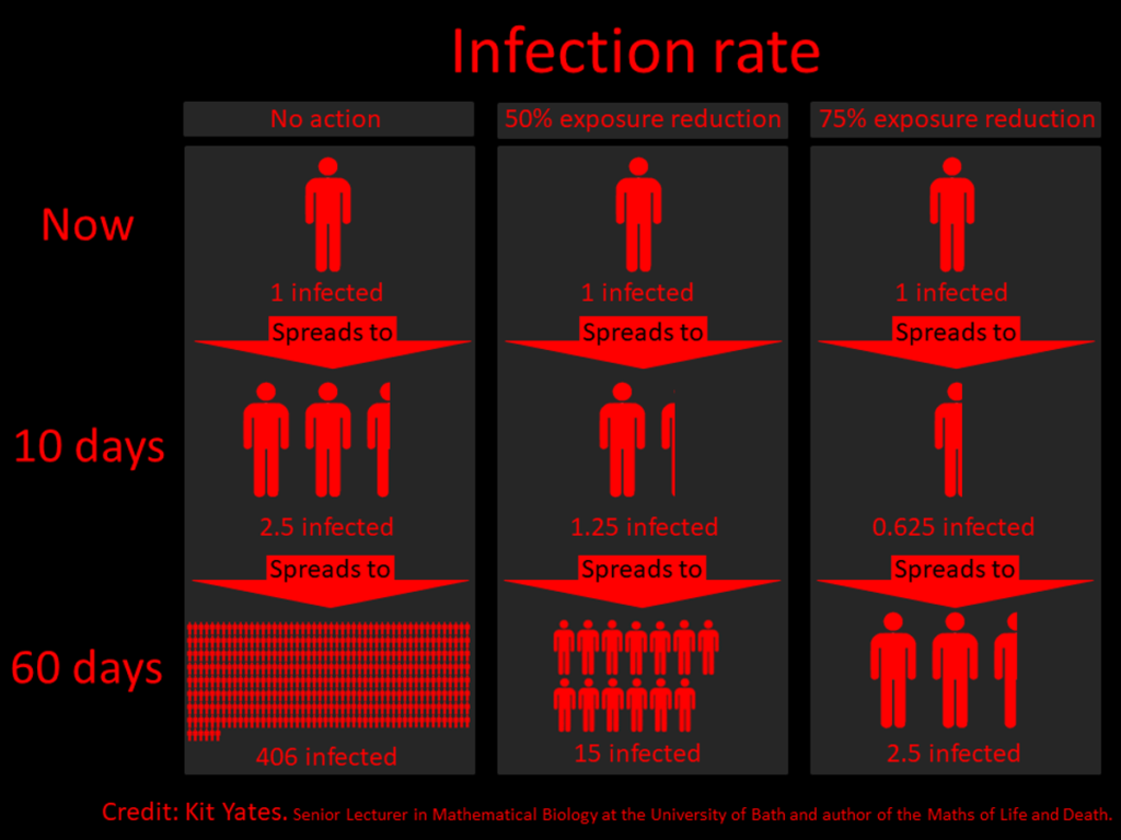 The science of mathematics tells us that the day before exponential growth can no longer be controlled is the day before it expands to half of full full blown max infection rates. That is to say, the day after 50% growth the entire population becomes infected. This is how exponential growth works.